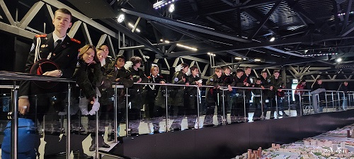 В нем, кадеты увидели весь центр столицы нашей Родины (пока в пределах третьего транспортного кольца) в мельчайших деталях. Посмотрели захватывающее светотехническое шоу, когда в темноте подсвечиваются разные районы Москвы и в динамиках звучат стихи под классическую музыку. Это позволило ближе познакомить кадет с достижениями страны и приобщить их к культурному наследию России.