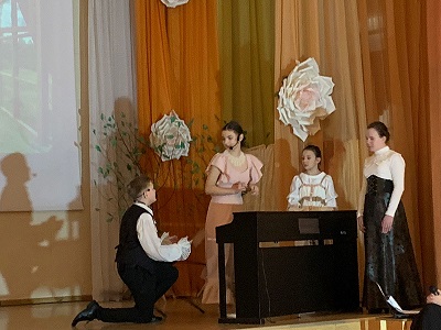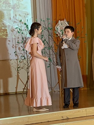Музыкально-театральная студия "Ералаш" представила премьерный показ спектакля по произведению А.С. Пушкина "Барышня - крестьянка". В спектакле задействованы ученики пятых и восьмых классов. Используется классическая и народная музыка.