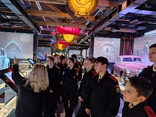 30 октября 2024 года учащиеся 8 К класса продолжили активное участие в проекте "День кадет на ВДНХ" и посетили музейный комплекс "Гараж особого назначения", где ознакомились с истоками создания и развития автомобильного транспорта, обслуживающего высшее руководство нашей страны. На примере экспозиций музейного комплекса кадеты наглядно убедились как развивалась наша автомобильная промышленность, инженерная мысль и рабочее производство. В интерактивном режиме ребята смогли досконально ознакомиться с особенностями отдельных категорий автомобилей и у них зародился интерес при изучении будущих профессий.