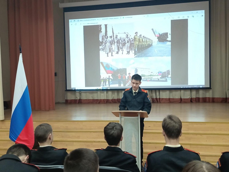 4 ноября 2024 года в кадетских классах прошёл Всероссийский день призывника. Кадеты довели до товарищей, что служба в ВС РФ это почётная обязанность каждого гражданина нашей страны, рассказали о подвигах участников СВО, продолжателей славных традиций героев Великой Отечественной войны 1941-1945 годов. Кадеты 8 К класса в этот день были удостоены права нести почётную вахту у Вечного огня на Поклонной горе.