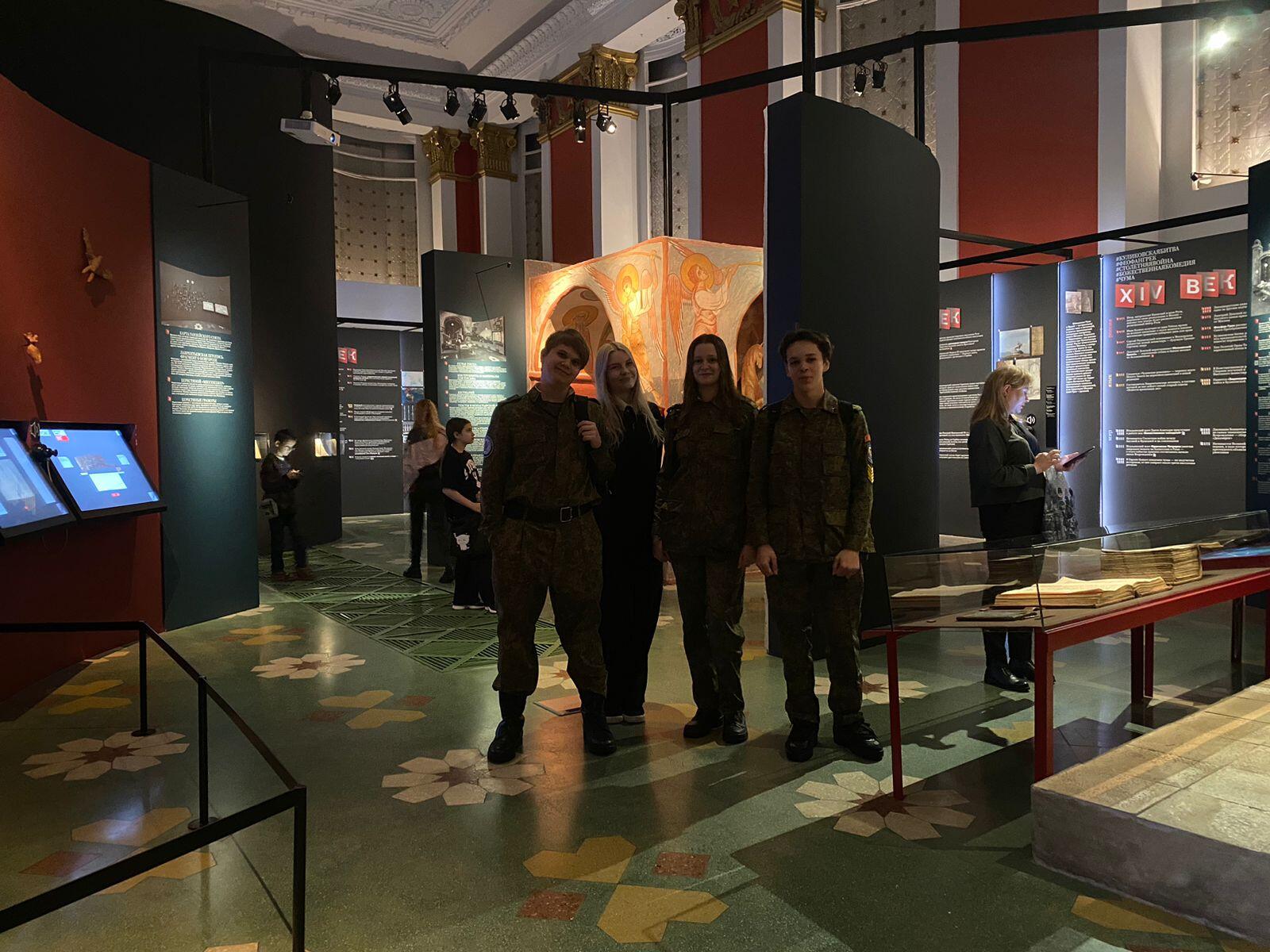 Кадеты 7 К и 11 К классов, в рамках проекта "День Кадет на ВДНХ", посетили музей славянской письменности. Это выставочное и образовательное пространство мирового уровня посвящено истории, настоящему и будущему кириллицы. Кадеты оказались в монастырской келье и первой русской типографии, сели за парты в земской школе, познакомились с "смсками" древних новгородцев. Особый интерес у наших учащихся вызвали экспозиции, рассказывающие о судьбе устной речи. Кадеты прошли с русским алфавитом многовековой путь, узнали, что на самом деле изобрели Кирилл и Мефодий.