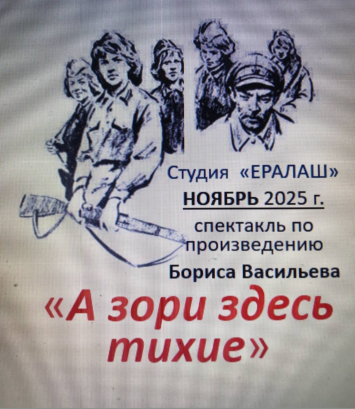 Анонс! 17 и 24 ноября 2025 года старшая группа театральной студии "Ералаш" представляет премьеру спектакля "А зори здесь тихие" по повести Б. Васильева
