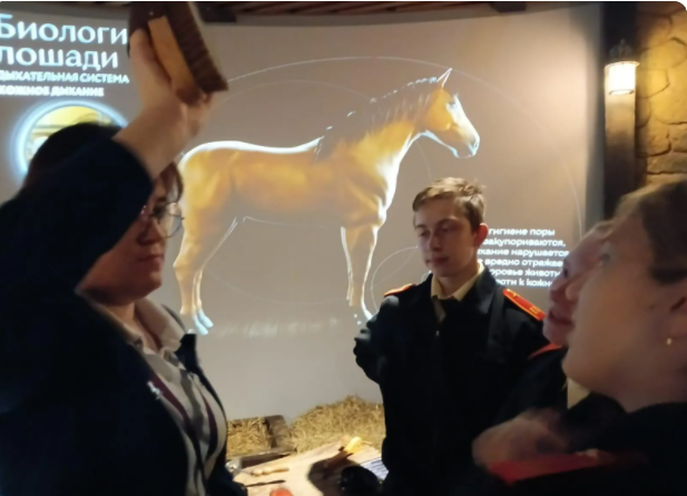 Кадеты 8 К класса, в рамках проекта «День кадет на ВДНХ», 23 октября 2025 года посетили Первую и единственную в России интерактивную экспозицию «МУЗЕЙ ЛОШАДИ», основным преимуществом которой является современный подход и мультимедийное оснащение.