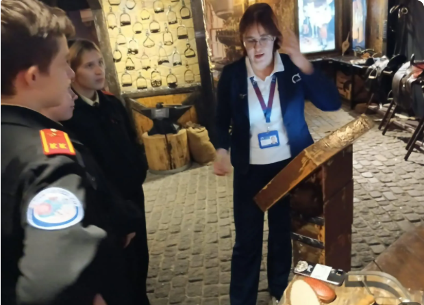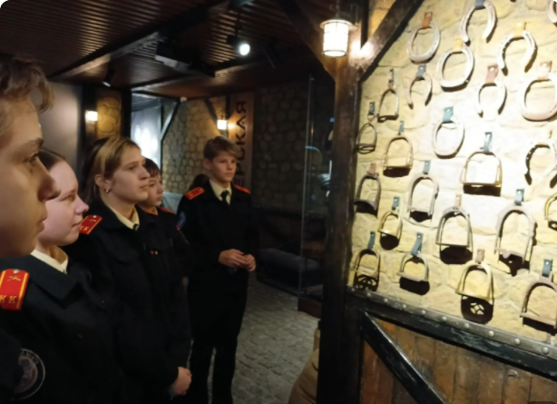 В интерактивном музее кадеты познакомились с такими древними конными профессиями, как шорник, ветеринарный врач, кузнец. Здесь же увидели инструменты, с помощью которых ухаживают за лошадьми. Также узнали о конных видах спорта: Выездка, Конное троеборье, Конкур, Джигитовка. И напоследок потерли подкову на удачу.