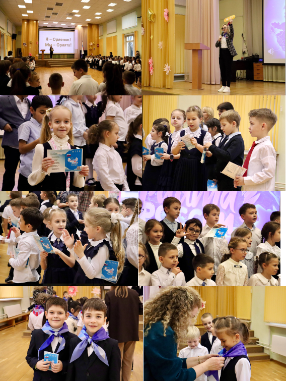 "Орлята России" — это первый шаг в удивительный мир открытий и встреч с интересными людьми, верной дружбы и яркого творчества, множества знаний и побед. Шаг под девизом “Учимся, растем, мечтаем вместе”! На посвящении ребята вместе с наставниками почтили традицию — дружно исполнили гимн Орлят России. Также ученики освежили в памяти основные направления движения, а после — торжественно повязали специальные галстуки как символ вступления в большую дружную орлятскую семью. Теперь ребята официально часть огромной команды, которая объединяет неравнодушных ребят со всей страны!