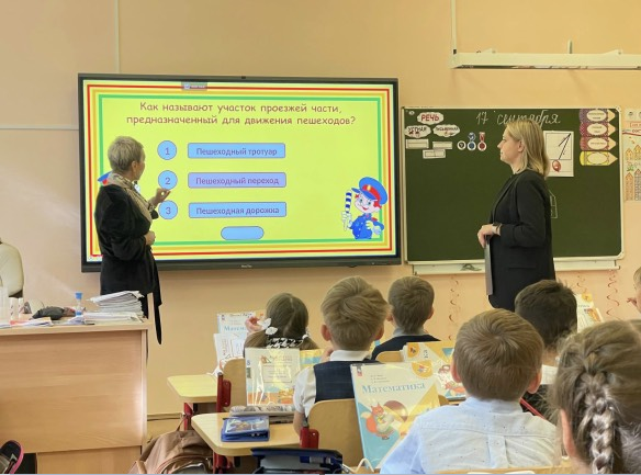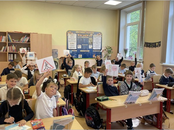 Первоклассники начали с небольшой разминки, вспомнили, что означают цвета светофора, размялись и зарядились позитивом. После поучаствовали в веселой викторине и вспоминали, узнавали дорожные знаки.