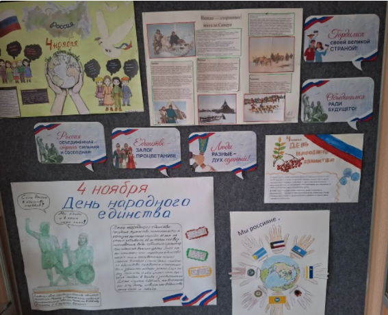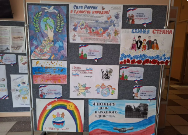 В преддверии Дня народного единства в школьном корпусе № 3 оформлена выставка плакатов «Сила России в единстве народа!». Представленные на выставке плакаты познакомили обучающихся с историей России и русского народа, познакомили с великими защитниками Руси Великой, а также с героизмом и сплочённостью многонационального народа России.