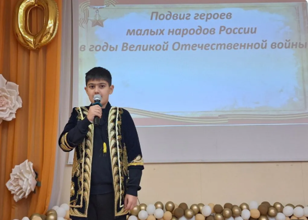 Подтверждение этому - Великая Отечественная война, которая навеки останется в памяти потомков и продолжателей великого народа великой страны. Около тридцати миллионов наших соотечественников, в том числе представителей малых народов России героически погибли за свободу нашей Родины. Теме «Подвиг малых народов России в годы Великой Отечественной войны» была посвящена очередная встреча в исторической гостиной школы.