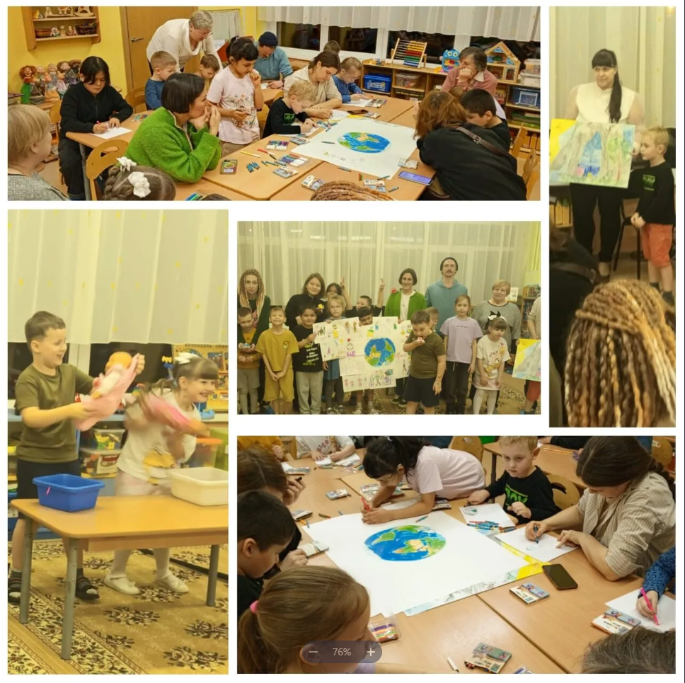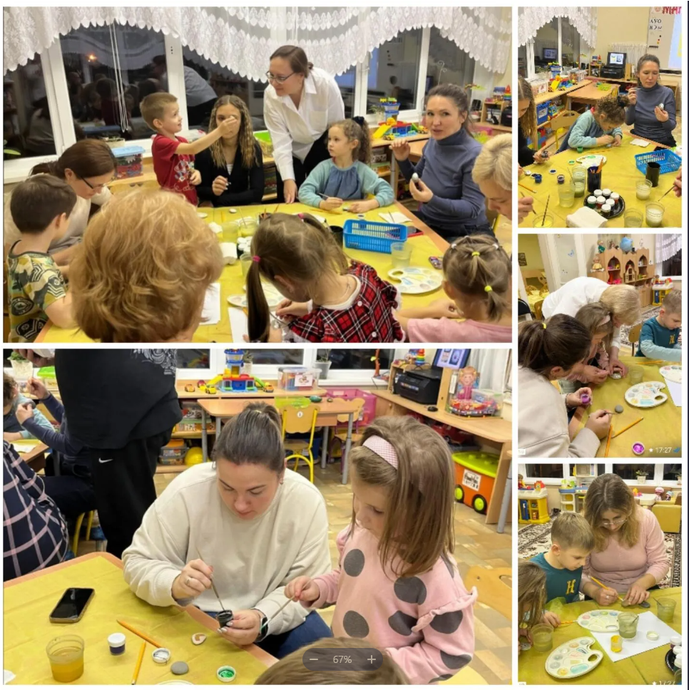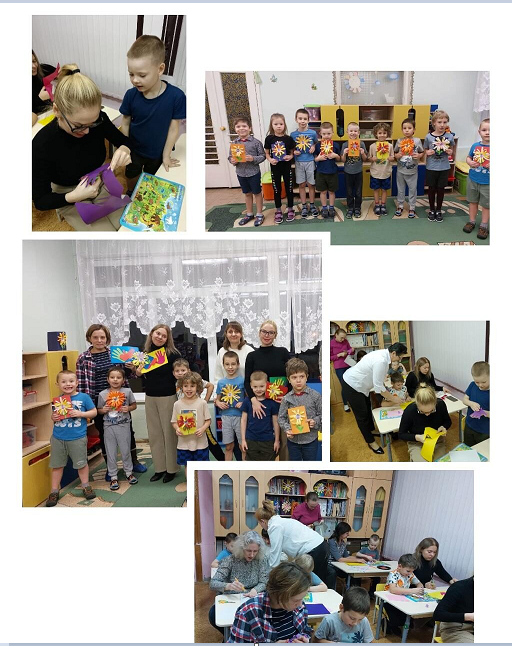 Педагоги вместе с детьми и родителями делали коллективную работу, поздравительную открытку и расписывали акриловыми красками цветы на гальке. Счастливые дети, творческие педагоги и заботливые родители.