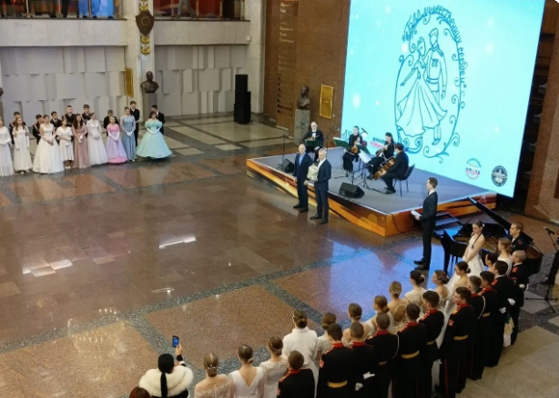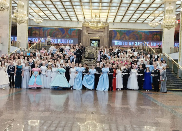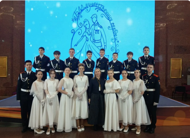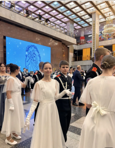 Около 130 пар - учащихся кадетских классов и корпусов города Москвы приняли участие в этом торжественном мероприятии и кружили на мраморном полу Зала Полководцев под музыкальное сопровождение струнного квартета под управлением Петра Гладыша. Нашу школу представляли учащиеся 7 к класса и участники МБКБ - 2025. Участники Бала продемонстрировали всем собравшимся красочные номера: полонез, падеграс, польку, кадрильи и вальсы, а также другие исторические бальные танцы. Каждый участник Бала передал новогоднее поздравление участникам СВО, где пожелал им скорейшей Победы и возвращения домой. " Мы стали участниками яркого события, которое подарило нам яркие эмоции и радость. Мы окунулись в волшебную атмосферу доброты и тепла" - так выразила общее мнение всех наших участников Бала кадет 7 К класса Анна К.